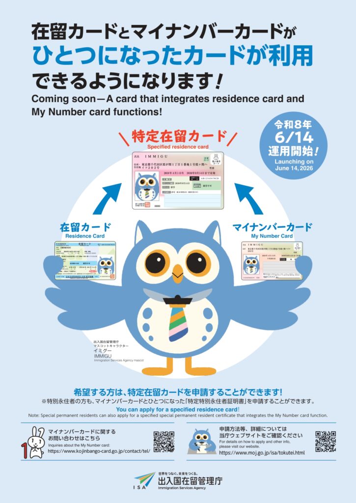 2026年6月14日から、在留カードとマイナンバーカードがひとつになった特定在留カードが利用できるようになります。